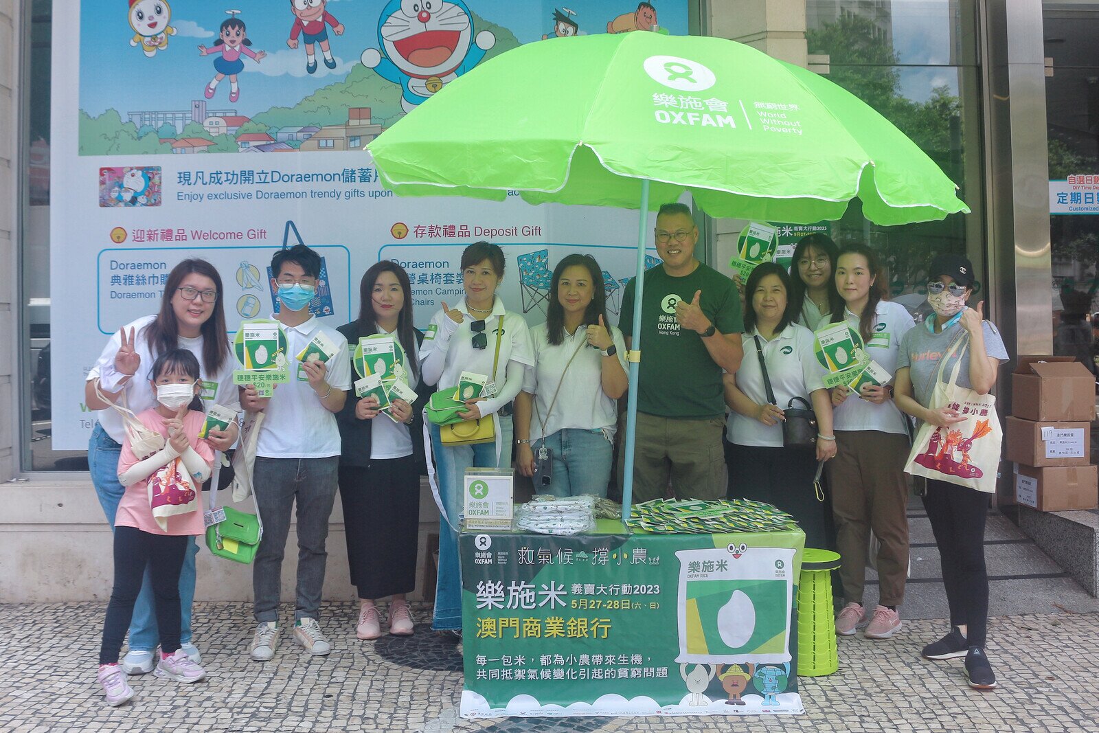 樂施會主辦的「救氣候,撐小農:樂施米義賣大行動2023」於今明兩日(5月27-28日)澳門、氹仔18個米檔舉行,近1,000位義工、23個義工團體參與,包括澳門中銀義工協會、澳門商業銀行義工隊、澳電義工隊、澳門演藝人協會、中國太平人壽保險、聖羅撒英文中學、東南小學等。活動一共義賣2噸樂施米,以支援仍在貧窮中掙扎的小農戶掌握耕種技術,應對極端天氣,改善生活,長遠脫貧。
